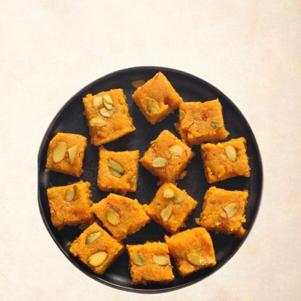 + £5Mango Coconut Barfi is a tropical twist on the classic Indian sweet, combining the richness of coconut with the vibrant sweetness of mango. This smooth, flavorful barfi offers a perfect balance of creamy coconut and the tangy-sweet essence of mango, creating a delightful treat for the senses. Ideal for festive occasions or as a refreshing indulgence!